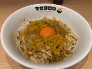 マゼタロウで、カレー釜玉。