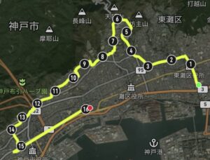 経路写真だとちょうど6のところが六甲ケーブルで9のところが摩耶ケーブル。