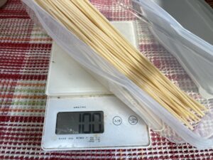 このスパゲッティ1本1g。