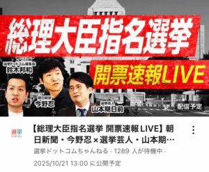 選挙ドットコムチャンネルで、総理大臣指名選挙を見ながらお昼ご飯。
