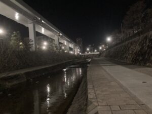 住吉川。なんか油断すると落っこちちゃいそうでちょっと怖いのよね。