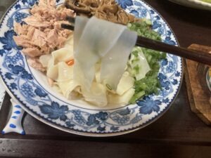 食感は長めのワンタンの皮のとこ。