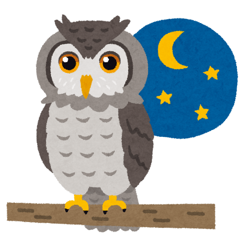 英語で夜型人間はnight owl(夜のフクロウ)。