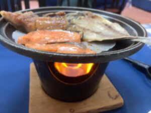 朝ごはんは自分で焼いた干物で召し上がってくださいということで、