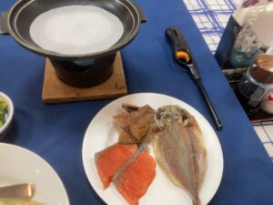 朝ごはんは自分で焼いた干物で召し上がってくださいということで、
