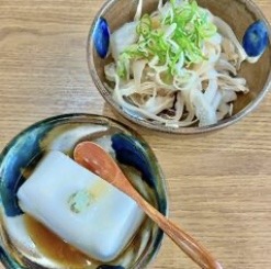 海ぶどう、もずくの天麩羅、ジーマミ豆腐、豆腐よう。