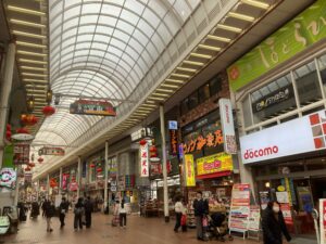 元町通り老舗のお煎餅屋さんにかわい子ちゃん。