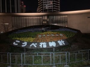 途中はー、市役所前花時計。