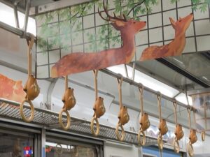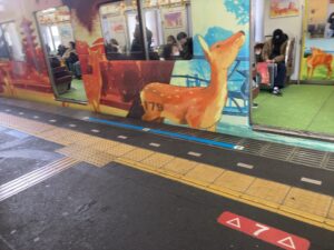 奈良直通の鹿の電車だった。