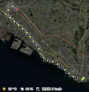 相方が住吉川から、姫路まで走ろうということで、走る。