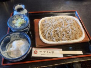 辛味大根そば。お店の隣で作ってる大根だって。ワサビがこちらの名物なのは知ってましたが辛味大根まで抑えているとは思いませんでした。伊豆、甘くないです。