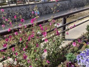 道路から見る川縁が気持ちよさそう。