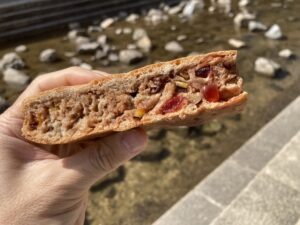 ドライフルーツやナッツが記事にたっぶり練り込まれてる。