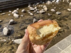 明太フランスと、パン・オ・フリュイを食べたらお腹いっぱいになったので、デザートのセブンのシュークリーム。