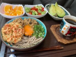 今日はお蕎麦食べなきゃね。かき揚げ載せたかったのでお近くのスーパーに買いにいく。