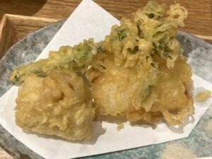 玉ねぎ丸っとの天ぷらがとても美味しい。