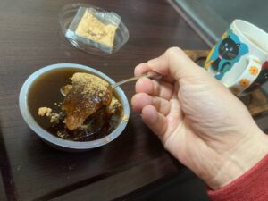 これ、ドトールのカフェオレ(インスタント)2杯でいただいたのですが、食べ終わった後まだ口の中に味が残ってます。