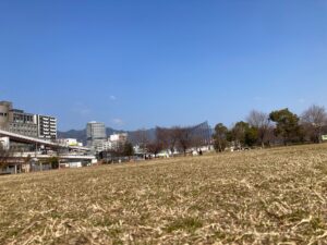 ベンチに座ってお昼どこで食べようかなって考える。