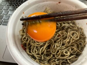 どうでも良いのですがこの卵の黄身とてもしっかりしてる。