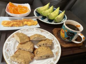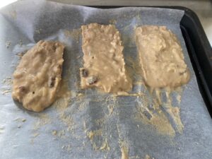 ちょっと膨らみが足りないけど、クルミとレーズンたっぷり入れたおかげもあってそこそこ美味しくできました。
