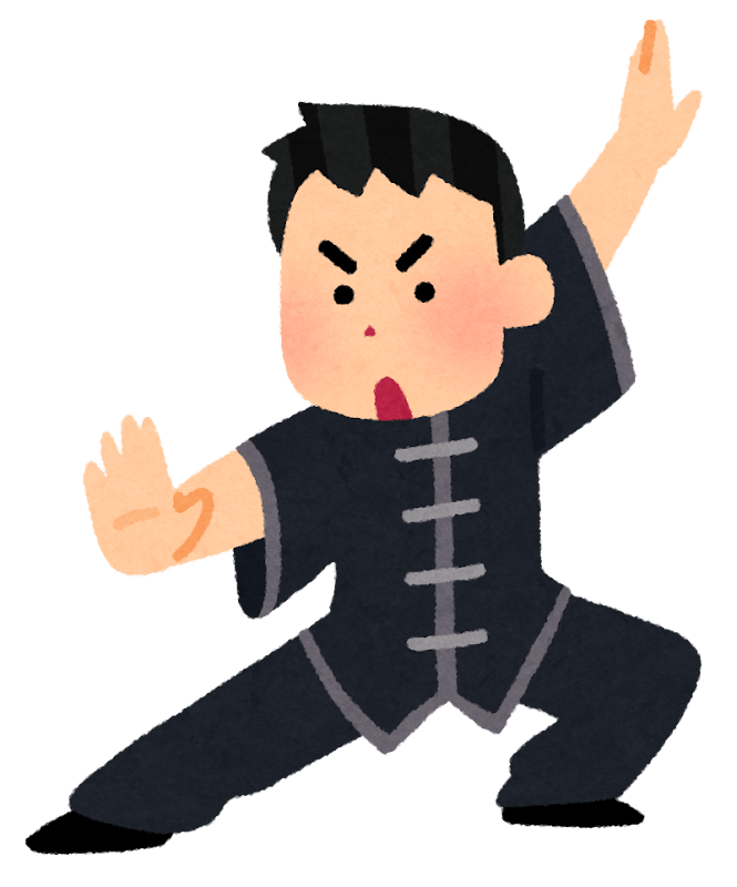 悪役と戦うジャッキーチェン。悪役は強く、まるで歯が立たない。