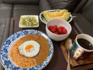 今朝のぼく。そろそろ朝走って遅めの朝ごはんか早めの昼ごはんを食べに行こうと思ってましたが、「まだ無理しないほうがいいんじゃない、ない、ない…」という気持ちに流されました。