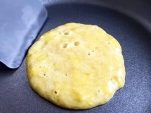 冷蔵庫でそろそろ限界を訴えていたバナナと卵で小さなパンケーキを何枚か作って重ねた上にトッピング。
