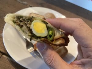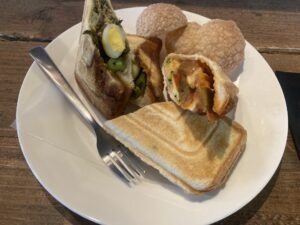 今日は、サバと高菜。ナスのアラビアータのホットサンドにライムミント。
