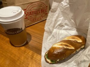 晩ご飯シナボンかよともおもったのだけど、エビアボカドのロールサンドがあったのでテイクアウト。