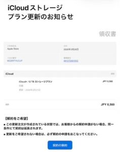 iCloudストレージプラン更新のお知らせ。