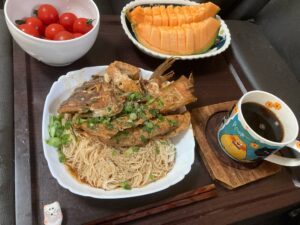 市販のお惣菜の鯛のあら煮を使っての体操麺(違、鯛素麺。