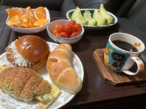 お仕事でお泊まりの方が捌ける頃を狙って、朝ごはんは9時。